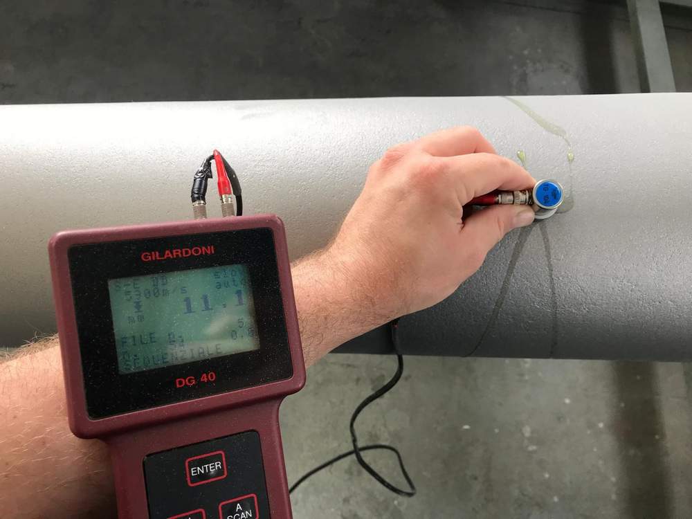 Il controllo spessimetrico prevede l’utilizzo di un apparecchio ultrasonoro per la definizione puntuale dello spessore del tubo.
