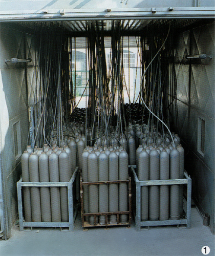 Dopo la prova idraulica le bombole vengono essiccate all’interno mediante l’insufflaggio di aria calda fino al raggiungimento di 30÷40 ppm.
