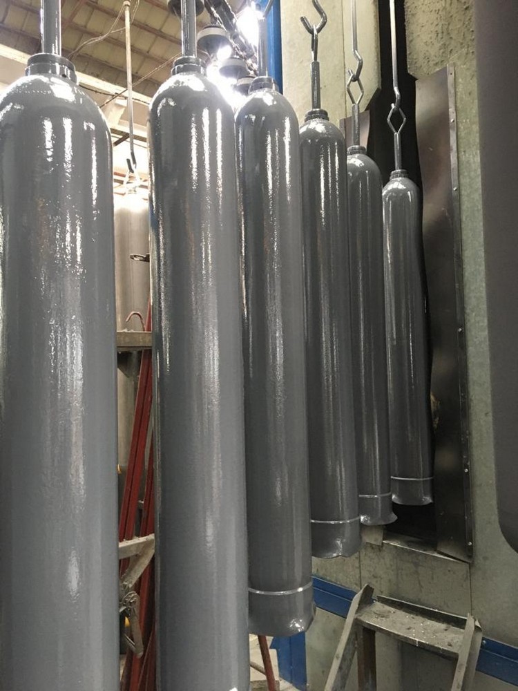 La verniciatura delle bombole viene condotta mediante impianti automatici: una volta caricata la catenaria la produzione avviene a ciclo continuo e consiste in diverse fasi: dopo il fosfosgrassaggio per il graffaggio della vernice (facoltativo) avviene il preriscaldo per l'applicazione della vernice, la verniciatura vera e propria (idrosolubile o a polvere), la cottura in forno a temperature da 70° a 220° ed infine la verniciatura dell’ogiva.